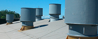 Exaustão geral para retirada de calor, fumaça e particulados dispersos no ambiente, melhorando as condições internas da área.