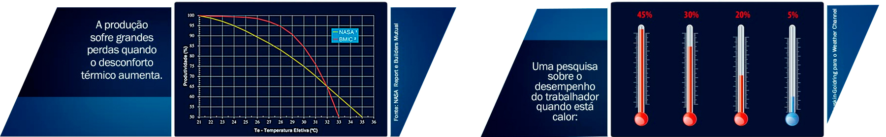 Projetos para melhoria do conforto térmico em ambientes industriais, melhorando as condições de trabalho através da renovação do ar, com a retirada do calor interno e a injeção de ar fresco.